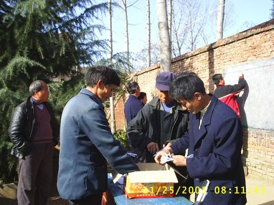 2005 年 11 月 23 日 ,我们来到河南嵩县洛沟村小学,在这个典型的山区学校我们看到中国山区学校的贫困:破旧的校舍和桌椅、简陋的教学用具、拮据的学生伙食、少的难以维持基本生活的老师工资(最少的是每月 130 元) … …然而这一切并没有影响师生们渴望学习知识的热情。刚到的第一天校长就告诉我们现在学校师生很需要计算机这一块的知识和实践操作培训。正是由于这个原因,在到达的当天下午我们便开始组装我们带过去的计算机并对老师进行计算机理论知识培训。