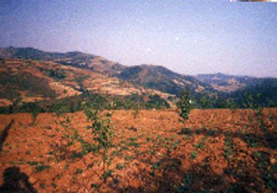 汽车在蜿蜒的山路上穿行,时处深冬,放眼望去,周围景物显得有些荒凉。但有几块零星的麦地里透着绿,令人感受到一种顽强的生命力。我们会同在岔路口等待我们多时的张堂校长,趟过潺潺小溪,沿着羊肠小道去往基地。