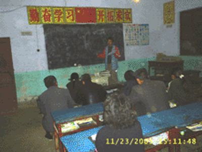 对老师们来说很重要的一个就是实际应用,第二天的下午放学后我们就又开始对老师进行上机操作的培训。所实践的都是最基本和最实用的操作,包括开机与关机、软盘和 U 盘异同及其使用讲解、光驱的作用和使用方法、 windows 操作界面和软件界面的讲解、键盘的指法、鼠标左右键的使用等等。而最后的重点就是对老师进行 word 和 excel 的讲解和操作指导。这对老师们来讲是实际的东西,老师们都很用心。我们给老师们讲解了 word 软件的界面,同时还详细介绍和实践了菜单栏命令和工具栏命令。在此基础上再教他们一些快捷键。其中的一位女老师由于有一定的基础,学得也比较快。由于只有两台电脑,只能有两个老师实际操作,剩下的老师就站在后面边听讲解、看操作,边做着笔记,同时还不时的提出一些问题。一直到了晚上十点钟,仍然还有老师在练习打字和 word 的一些操作命令。一位年长的老师笑着对我们说:“我们先让年轻老师学,他们年轻,学起来快。他们学会了再教我们学 , 呵呵。”而看着学校老师打了一段 word 文档同时还打印了出来,老师们都说这下以后就方便多了。原来以前他们打印文件都要到二十多公里的乡上去。